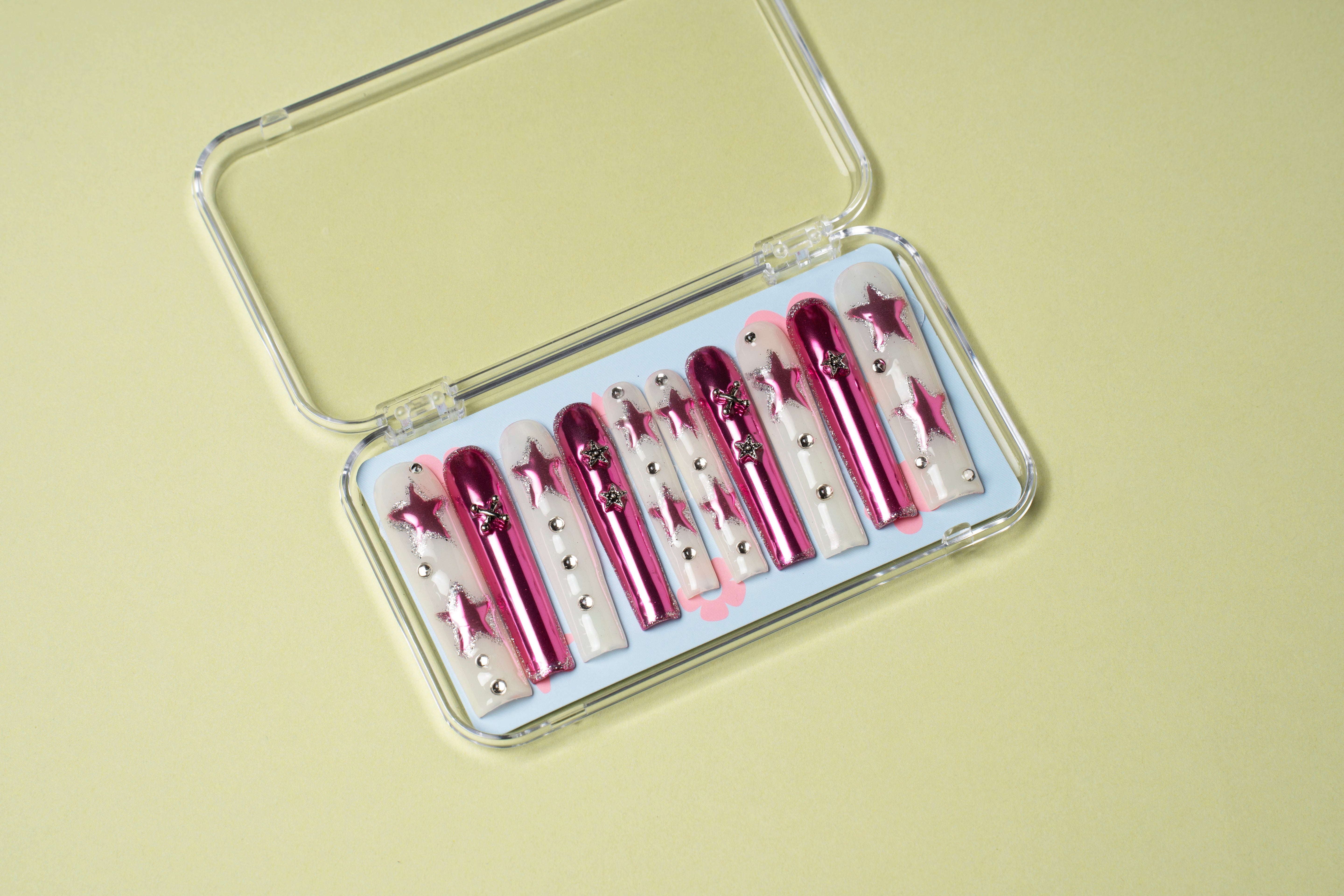 Show off your patriotic spirit with these playful American Nails, featuring the iconic stars and stripes design all over. Perfect for adding a fun, festive touch to your look, these nails bring a bold and lively vibe to any outfit. Celebrate in style and let your fingertips do the talking!